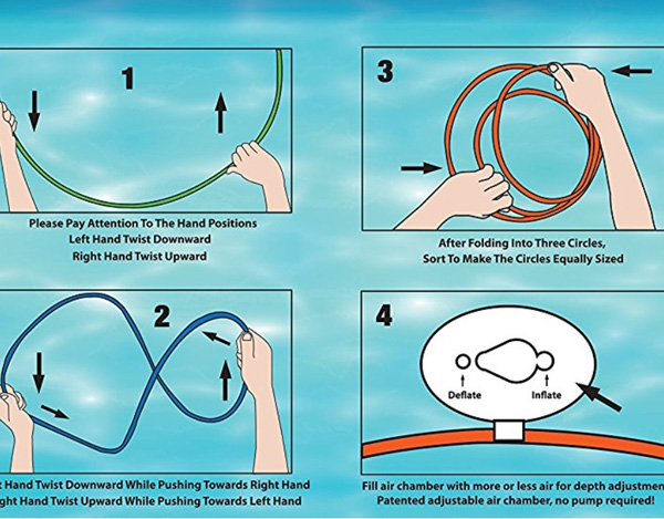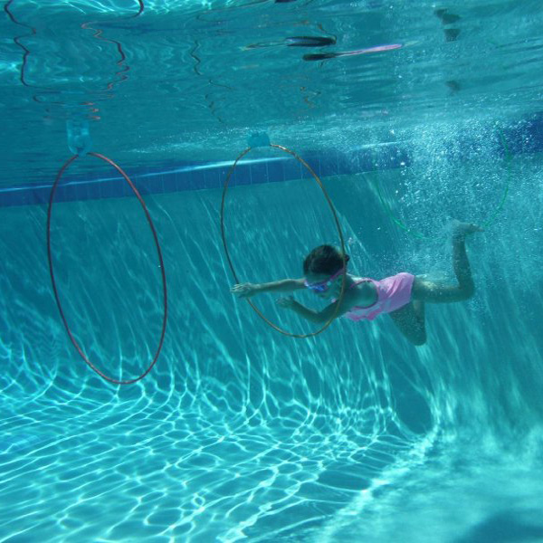 Cerculetele plutesc pe verticala la suprafata apei oferind copiilor o excelenta modaliate de distractie: un tunel de inele prin care sa treaca fara sa le atinga!